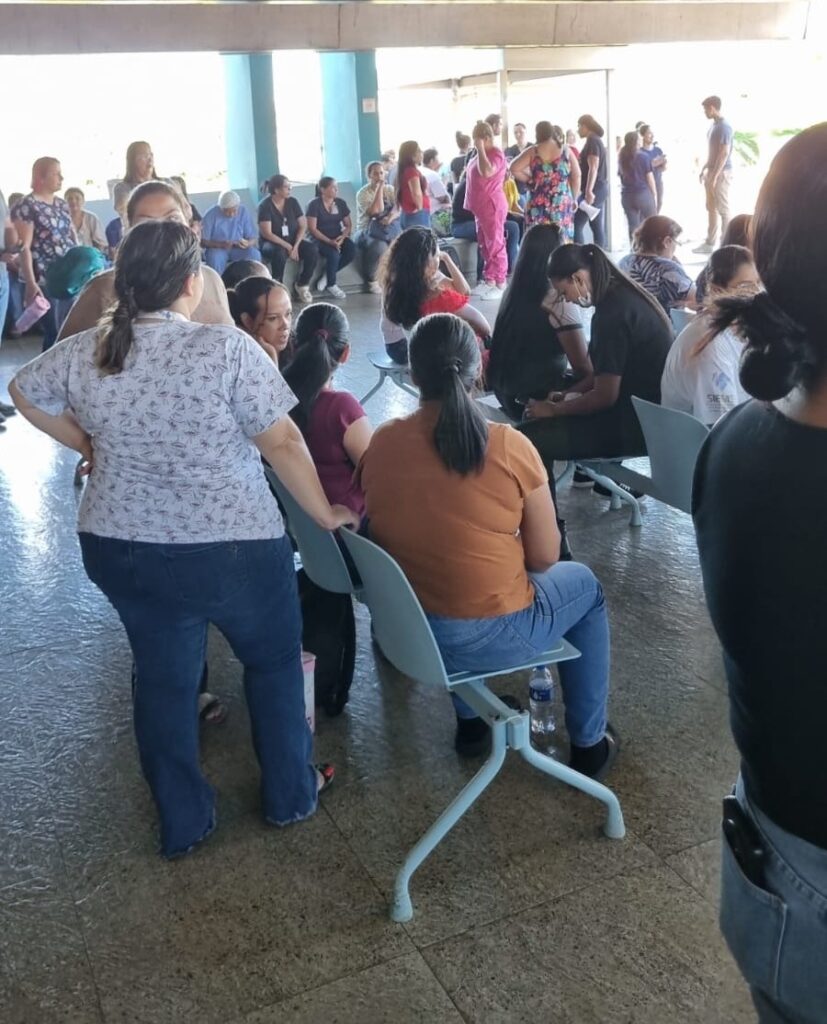 Funcionários da Santa Casa já iniciaram a organização da paralisação e se encontram em frente à entrada do hospital.
