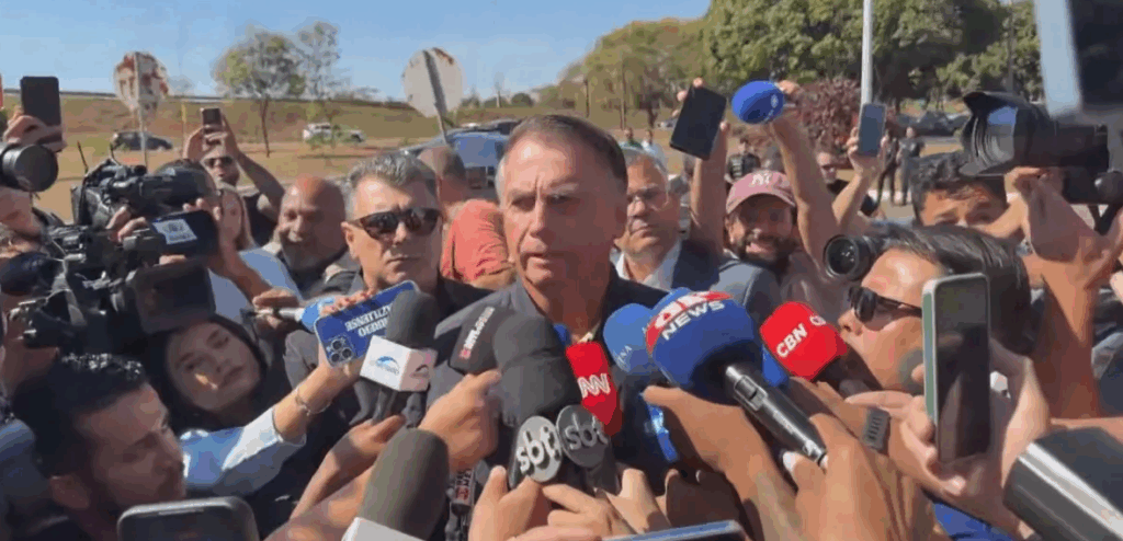 O ex-presidente Jair Bolsonaro (PL) negou a jornalistas nesta sexta-feira (18) que tenha tido a intenção de deixar o Brasil. Após decisão do ministro Alexandre de Moraes, do STF (Supremo Tribunal Federal, que determinou o uso de tornozeleira eletrônica, Bolsonaro falou em “suprema humilhação”.