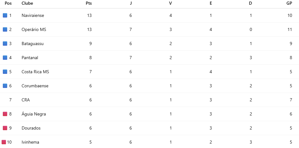 Com a vitória, o Naviraiense chegou aos 13 pontos, mesma pontuação do Operário, vice líder, mas assumiu a liderança pelos critérios de desempate. Enquanto o tem quatro vitórias, o Galo tem apenas três.