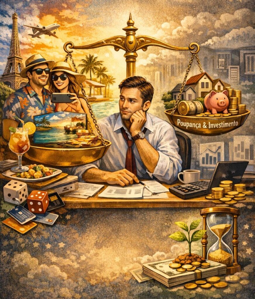 A vida financeira é uma constante escolha, entre onde colocar o recurso e onde não colocar, porque nunca teremos todo o recurso suficiente para colocar em tudo que desejamos. Essa é uma verdade. A tendência mais comum e natural é escolhermos àquilo que nos dará maior nível de prazer. Comprar um pacote para Dubai é muito mais prazeroso que investir em ações, ou adquirir uma hospedagem no resort all inclusive do famoso ministro, é centenas de vezes mais divertido que pensar em guardar um percentual da renda. Simplesmente sair com a pessoa amada para uma noite romântica no restaurante mas badalado da cidade é infinitamente mais atrativo que sentar para planilhar as despesas do mês. Parece uma luta desigual. O prazer da recompensa imediata contra a recompensa futura de uma vida regrada.