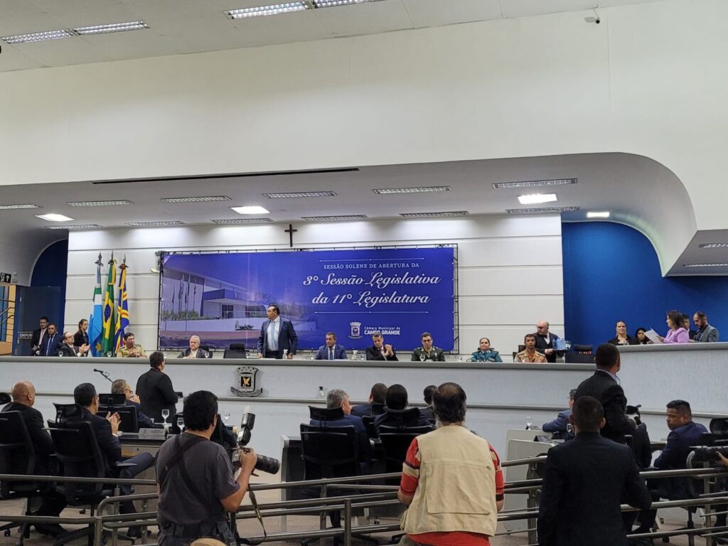 Na manhã desta quinta-feira, 2, a Câmara de Vereadores de Campo Grande realizou a Sessão Solene de abertura da 3° Sessão Legislativa da 11° legislatura. A prefeita de Campo Grande, Adriane Lopes (Progressistas) esteve presente e entregou um relatório aos vereadores, no qual apresenta a situação do município.